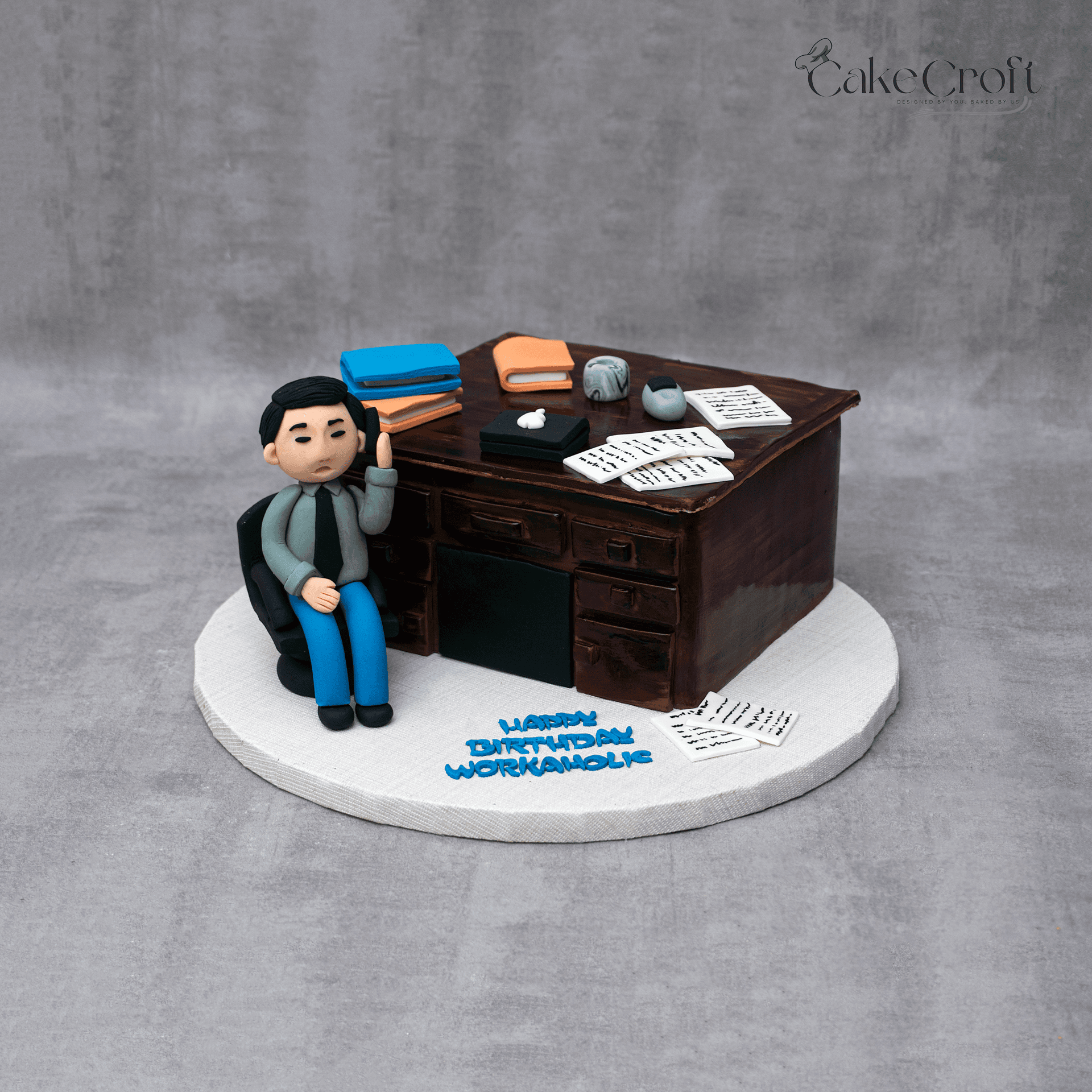 Celebrate the hardworking hero in your life with this highly detailed Workaholic Office Desk Cake, featuring a realistic fondant office table loaded with files, papers, coffee mugs, documents, and a tired-looking office figurine. The cake perfectly captures daily corporate chaos, making it an unforgettable surprise for managers, accountants, corporate employees, work-from-home warriors, or anyone who lives behind a desk. This handcrafted masterpiece is ideal for birthdays, office events, or funny appreciation gifts.